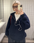 【再販】ネイビーダブルジップパーカー Y0075